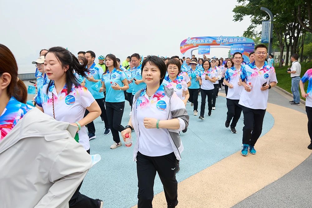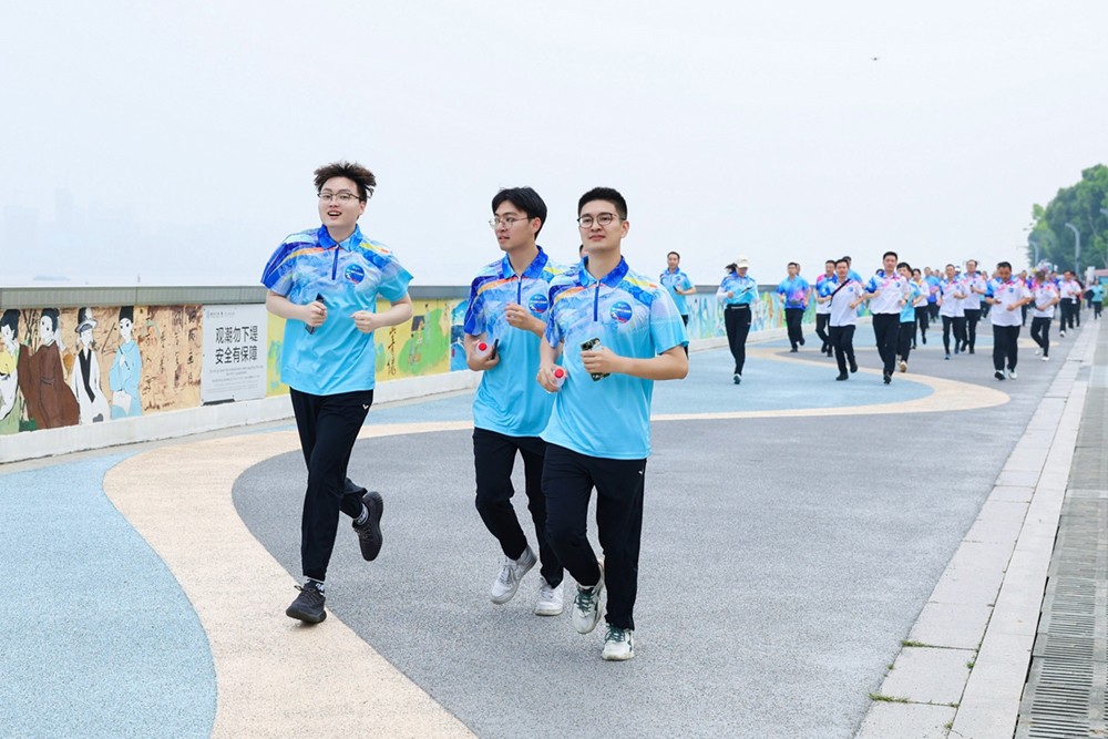 一路上,大家精神抖擻,步伐矯健,展現(xiàn)出了時代企業(yè)的精氣神。進入錢江世紀城公園,集團工會主席羊志堅宣布,“開幕式沿江跑正式開始!”