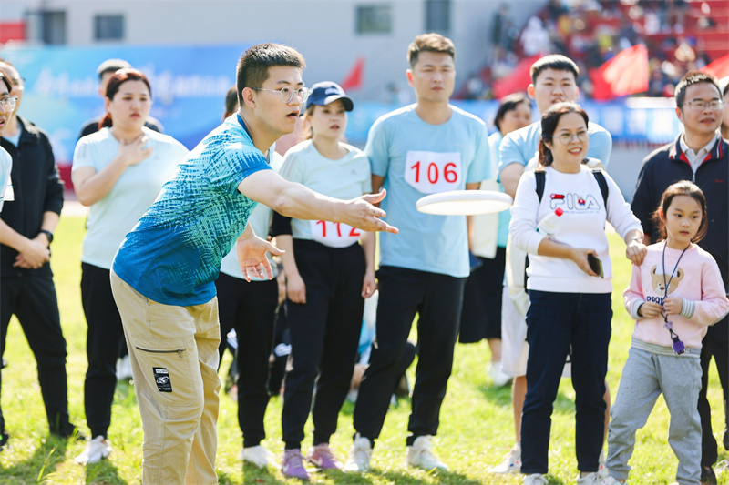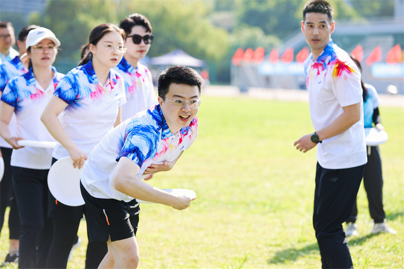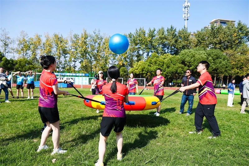 在趣味三項中,鼓動一心,共繪藍(lán)圖,急速飛盤,都需要眾人鼎力相助。歡聲笑語中,大家齊心協(xié)力完成了比賽,拉近了彼此間的距離。