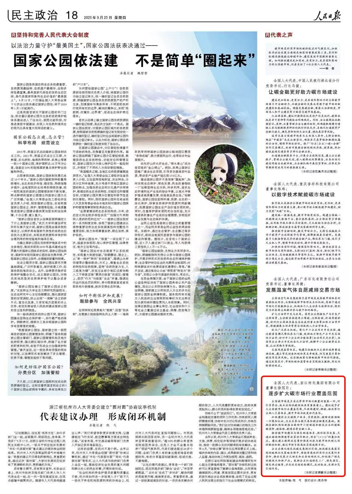 人民日報(bào)看浙江|全國人大代表、浙江傳化集團(tuán)有限公司董事長徐冠巨:逐步擴(kuò)大碳市場行業(yè)覆蓋范圍
